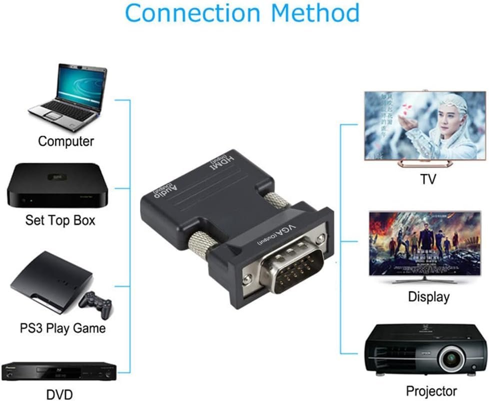 Adaptor ini kompatibel dengan berbagai perangkat HDMI, seperti laptop, PC, konsol game, TV, dan banyak lagi. Ini memungkinkan Anda untuk menghubungkan perangkat modern dengan monitor atau proyektor VGA.