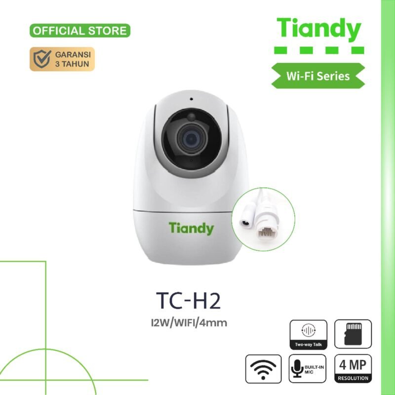 TC-H2 4MP Putih Spec:I2W/WIFI/4mm 4MP Fixed Color Maker Wi-Fi PT Camera Key Features – Plastic housing – Up to 4MP,2560×1440@20fps – S+265/H.265/H.264B/H.264M/H.264H – Color:0.02Lux@(F1.6,AGC ON),B/W:0Lux with IR – IR range up to 15m – 1×Built-in Mic, 1×Built-in Loudspeaker – Support microSD/microSDHC/microSDXC card,up to 256GB – Operating conditions -10℃-45℃(14℉~113℉), ≤95%RH – DC12V±5% Max.7.5W Garansi Tiandy 3…