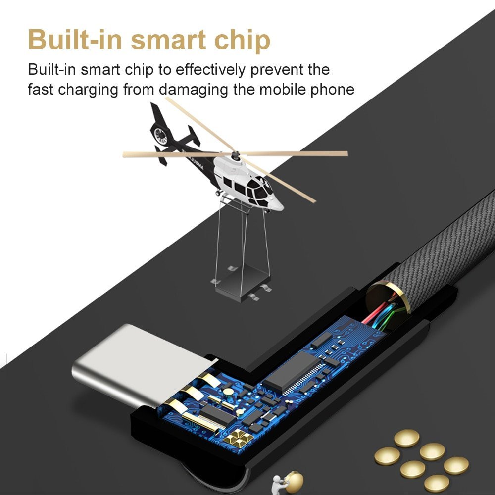 Terbuat dari material TPE berkualitas yang tidak mudah menekuk seperti kabel-kabel pada umumnya. Berbeda dari kabel charger biasa, produk dari OLAF ini dilapisi benang nilon dengan motif braided yang dapat memberikan perlindungan ekstra. Lapisan ini membuat kabel tidak mudah rusak dan mengelupas bahkan saat tertekuk dengan ekstrem.