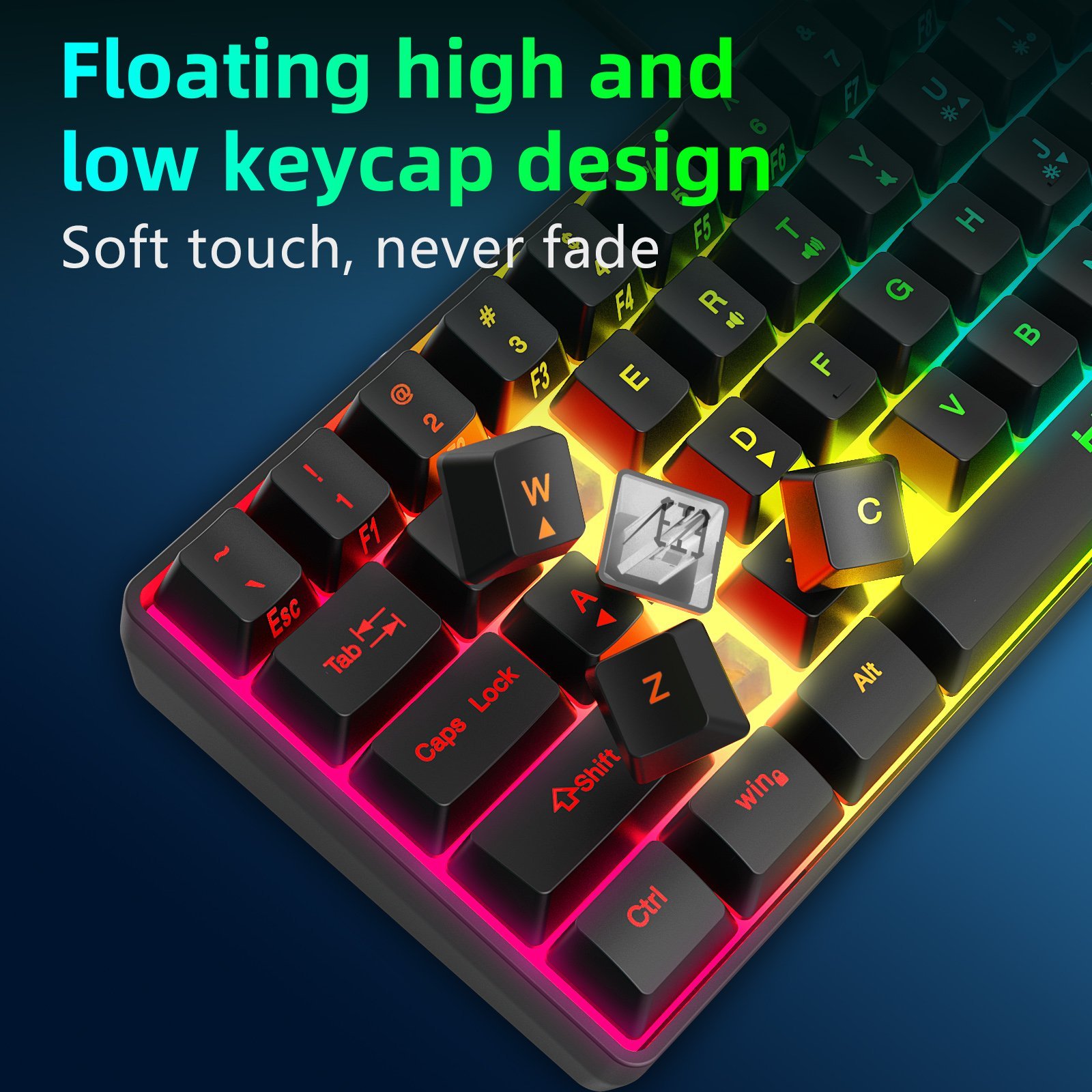 1 x Y-Productive Keyboard Gaming RGB Illuminated Mechanical Feel 61 Key Wired