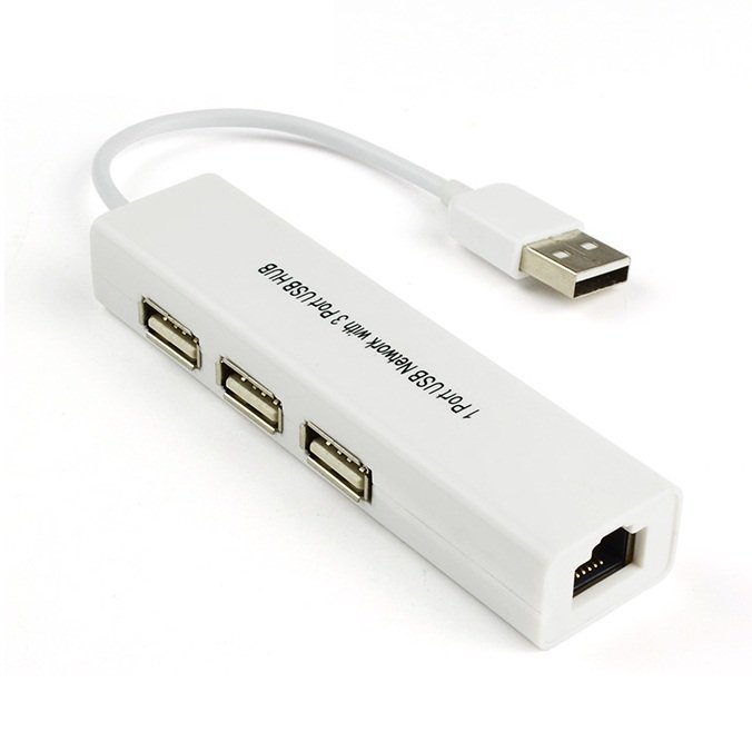 USB to LAN Ethernet External Network Card with USB Hub – White